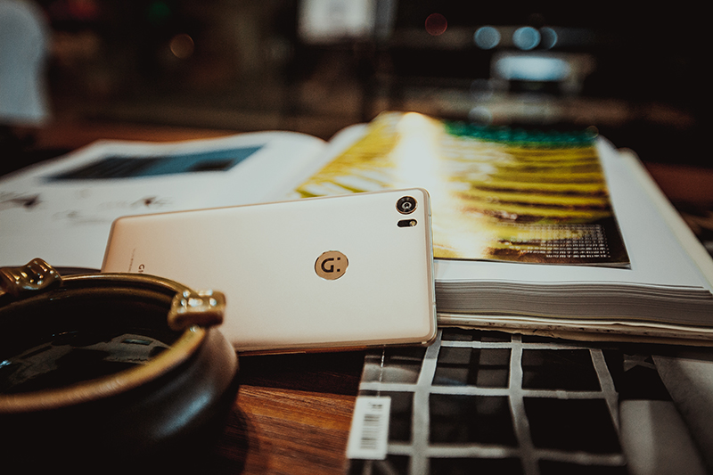手机背部的上方分别是后置摄像头和补光灯,中间是金立的新logo,但并未加入背部指纹识别功能