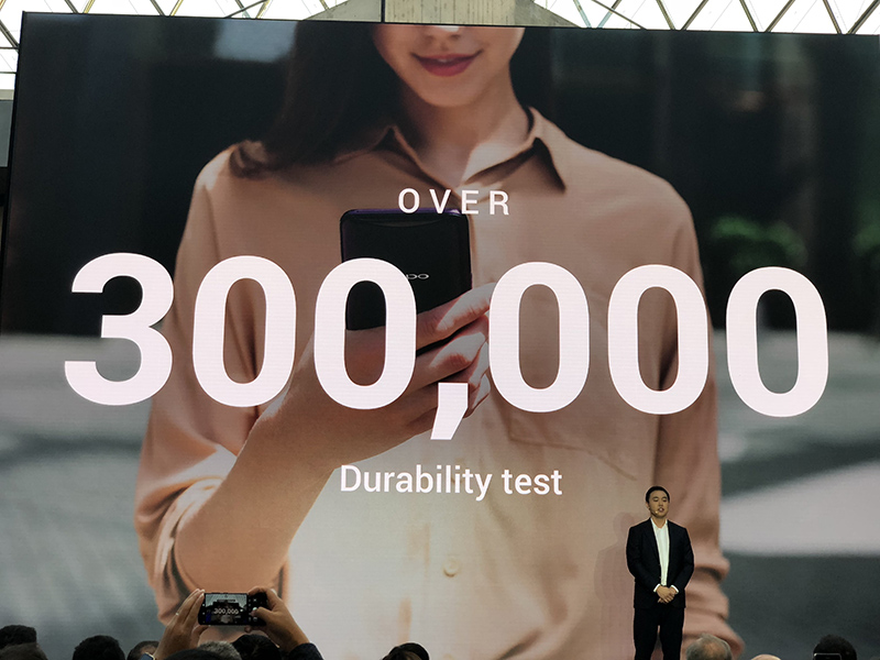这一双轨潜望结构成为了OPPO能够实现正面超高屏占比的关键,同时,产品团队针对双轨潜望结构进行了严格测试,可感知手机跌落并自动收回双轨潜望模块,兼顾了设计的美观性和结构的安全性。根据OPPO的相关数据,这一结构能够接受30万次的测试。