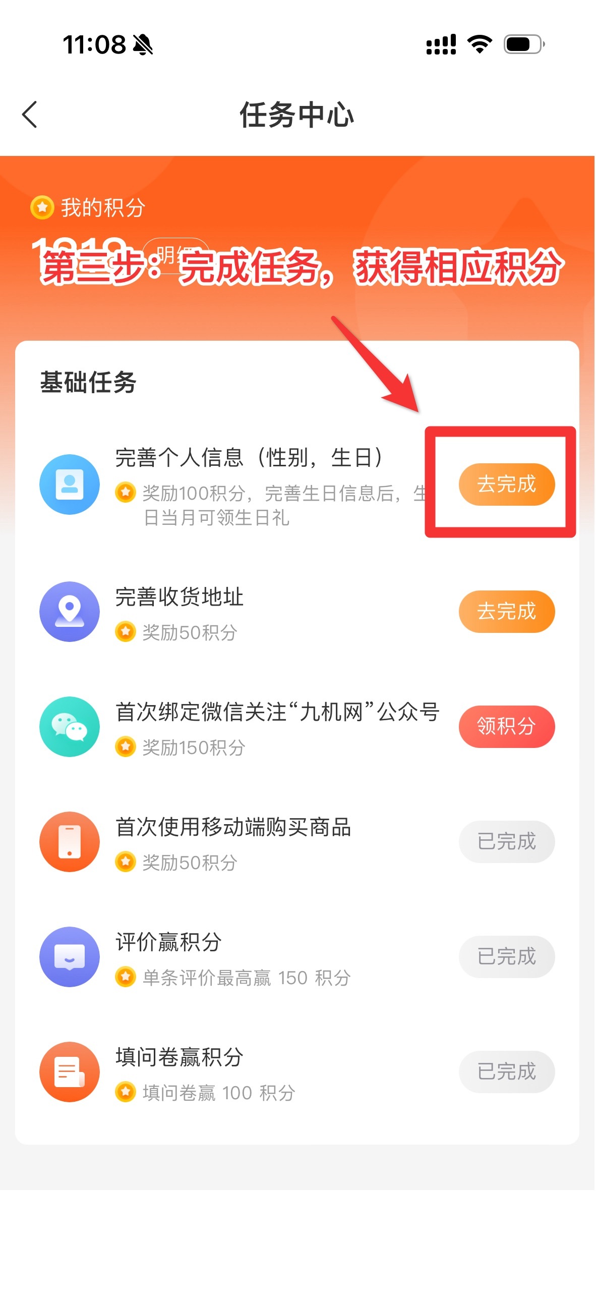 您可通过【九机APP/小程序】—点击【我的】—点击【积分兑换】—点击【赚积分】,完成相关任务后即可获得对应积分,可获取积分的任务包括:完善信息、参与问卷调研、关注“九机网”公众号等。