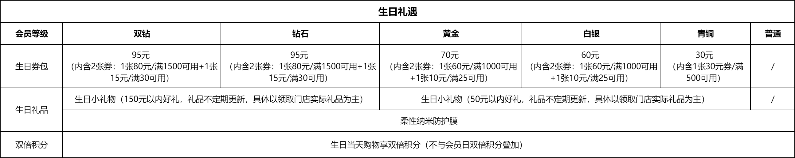 注:只要在会员日(每月9日)下单的订单,均可享受双倍积分,但会员日双倍积分不与生日双倍积分叠加。
