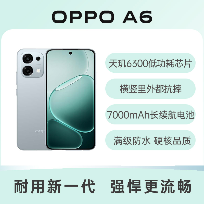 OPPO A6 全网通5G版 丝绒灰 12GB+256GB  天玑6300低功耗流畅芯;横竖里外都抗摔;不怕泡水、冲水、热水;电池长续航,一充用一天;山海通信,不惧慢网、弱网、没网