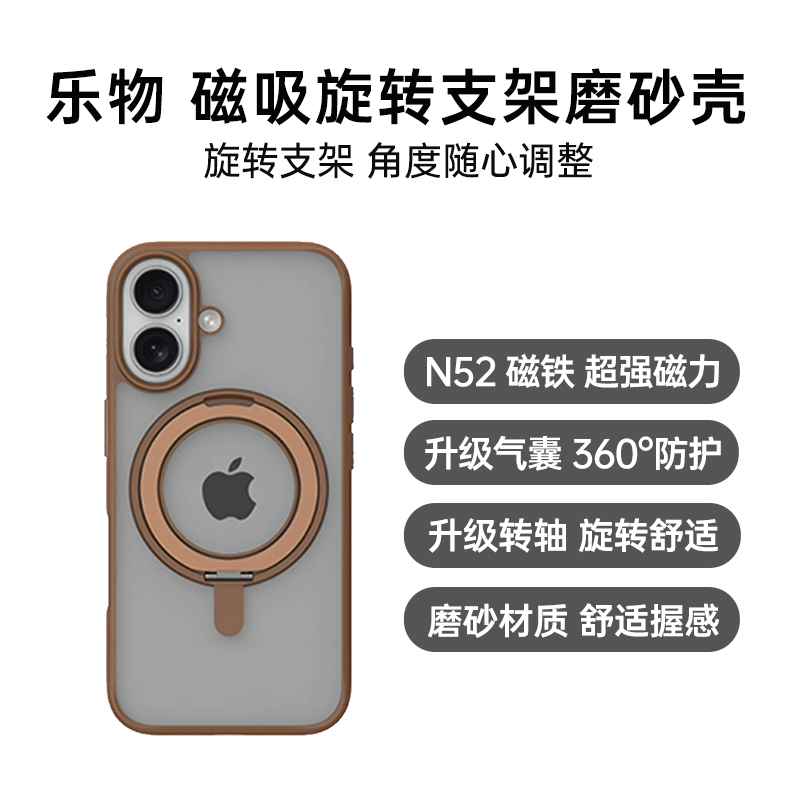 乐物 iPhone 16 MagSafe 磨砂磁吸 旋转支架保护壳 金色 金属支架,超强支撑力 ,升级气囊,360°防护