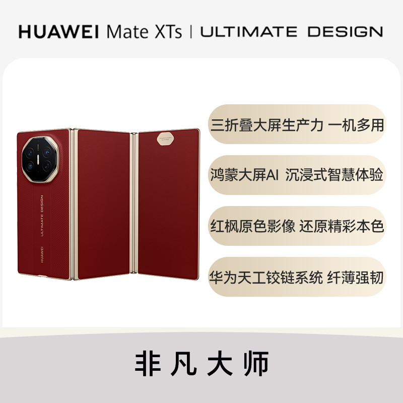 华为 Mate XTs 非凡大师 瑞红 16GB+1TB 标准版 鸿蒙大屏AI沉浸式智慧体验;红枫原色影像;三折叠大屏生产力 一机多用;华为天工铰链系统 纤薄强韧