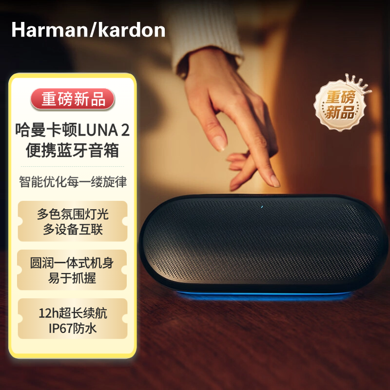 哈曼卡顿 音乐水晶5代 无线蓝牙家庭扬声器 黑色 三分频立体声学,新增双25MM 高音单元与下沉式低音炮,全透明穹顶焕新,低音炮极致透光,新增五种RGB呼吸灯效,APP可定制灯效。
