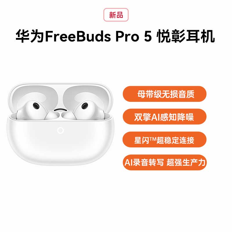 华为 FreeBuds Pro 4 悦彰耳机 雪域白 首款搭载HarmonyOS NEXT的TWS耳机,高解析无损音质,记忆耳塞深度降噪,小艺智能AI交互体验