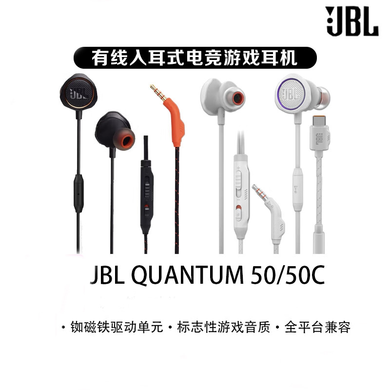 JBL 量子风暴 3.5mm+USB-C接口 入耳式线控游戏耳机 白色 3D环绕音效 听声辨位,语音增强型麦克风,稳固无忧舒适自如,单耳模式避免缠线,USB-C和3.5mm双接口