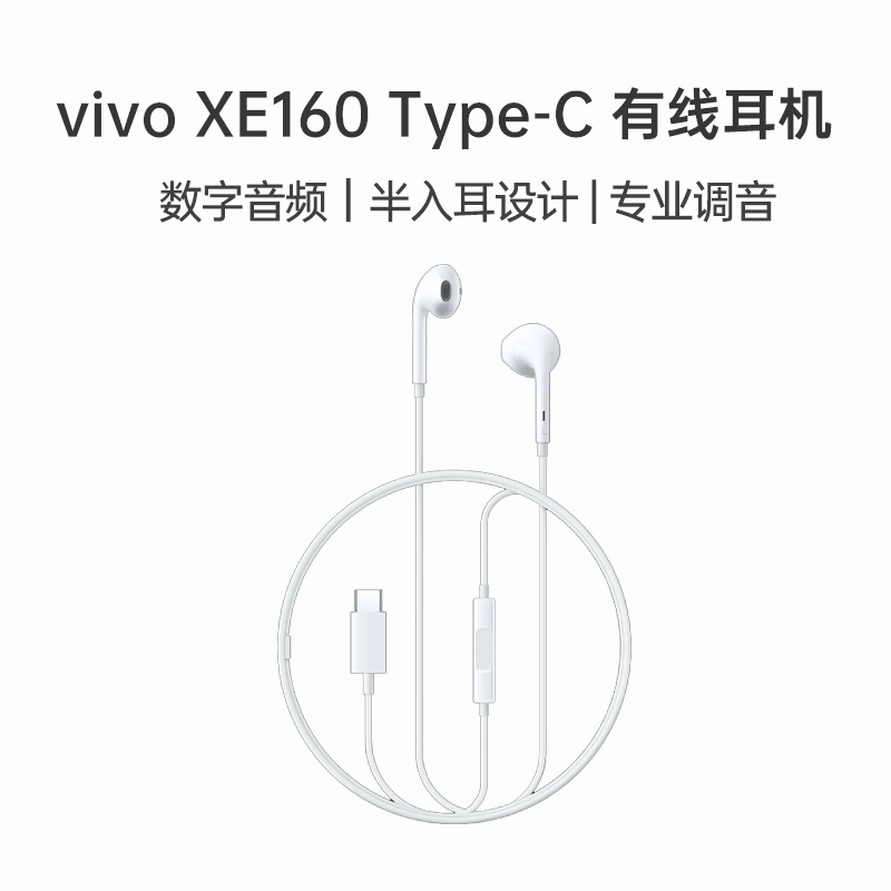 vivo XE160 Type-C接口 模拟信号半入耳式线控耳机 白色 1.25m 舒适佩戴
