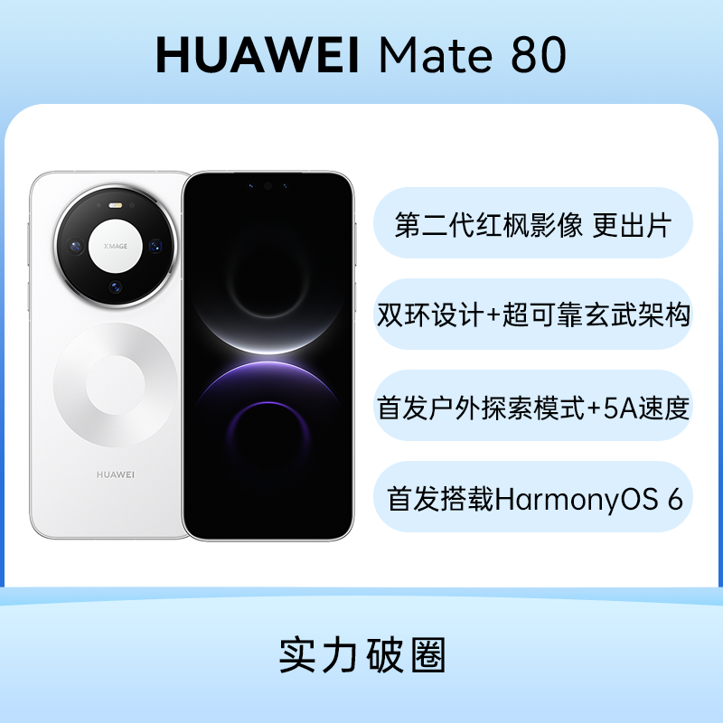 华为 Mate 80 雪域白 12GB+512GB 第二代红枫原色影像 更出片;首发搭载HarmonyOS6越用越香;双环设计+超可靠玄武架构;首发户外探索模式+5A速度快人一步