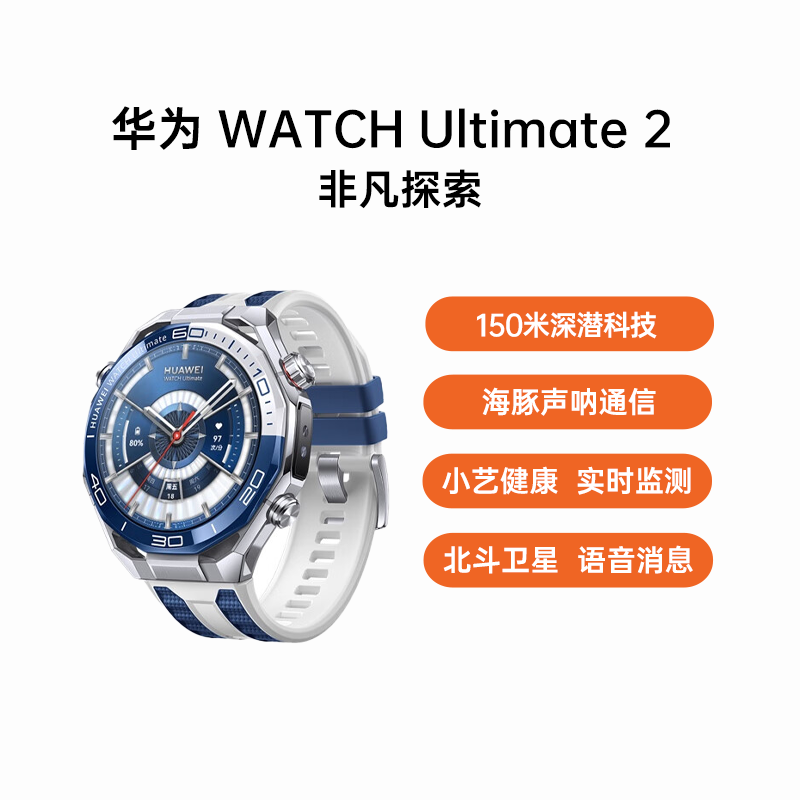 华为 Watch Ultimate 智能手表 非凡大师 金色钛金属表带 标准版 双向北斗卫星消息、超坚固非晶锆合金、百米深潜科技、专业健康管理