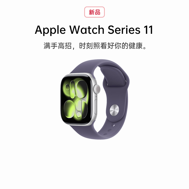 苹果 Apple Watch Series 11 智能手表 铝金属系列 GPS版-不可享国补 银色铝金属表壳+雾紫色运动型表带S/M 42毫米 该商品未拆封未激活,可正常享受新机质保服务;不与国家补贴和其他优惠叠加,每款数量有限,抢完即止!