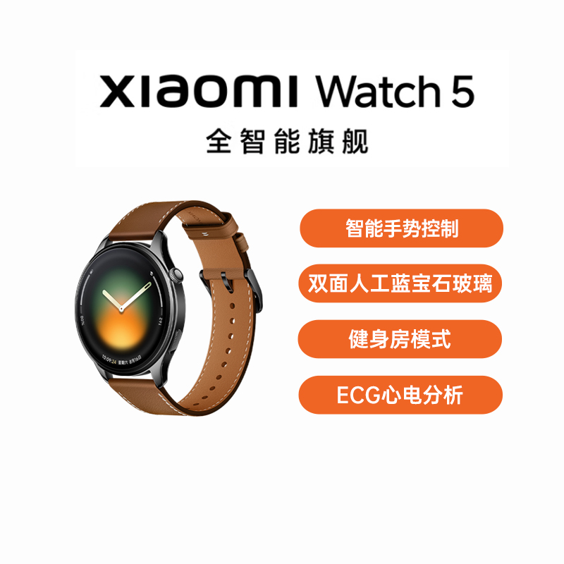 华为 WATCH 5 智能手表 星河蓝 不锈钢 蓝色素皮复合表带 46毫米 首创X-TAP智感窗,手指碰一碰就能进行健康监测,首次加入高血压风险评估,手势操控手表,全系球面蓝宝石玻璃,航天级钛合金材质