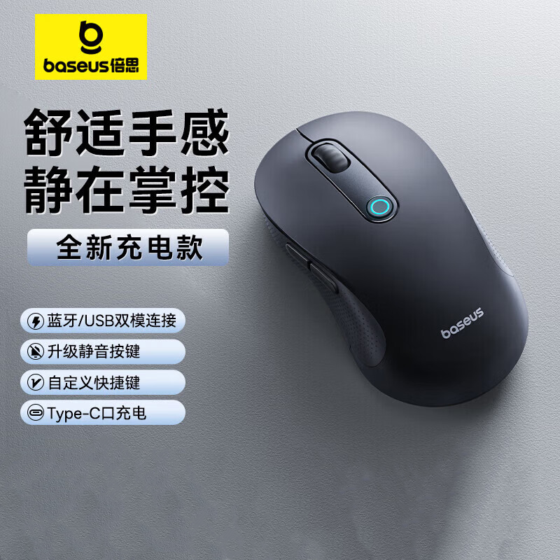 倍思 F02 无线USB/蓝牙 充电办公静音鼠标