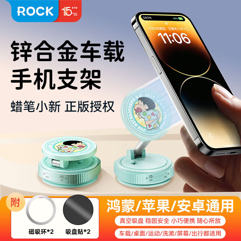 洛克 旋钮真空吸附 magsafe磁吸桌面车载旋转支架 黑色 真空旋钮超稳固吸盘,360°自由旋转,超强磁力固定,内附磁吸贴片,安卓机贴片即可使用