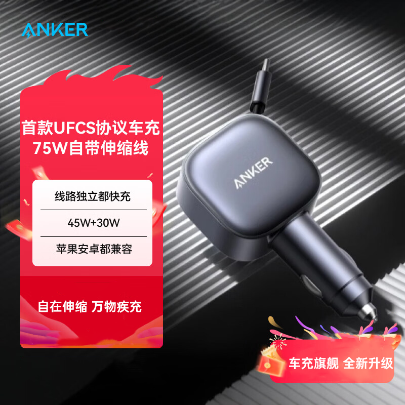 航嘉 mini 45W 双口车载充电器 C45 深灰色 双口全机型适配车充,单插支持45W快充,全合金机身散热更快,小尺寸近乎隐形,拉环拆卸方便。