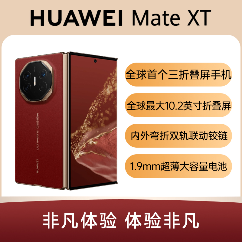 华为 Mate XT 非凡大师 瑞红 16GB+512GB 先享版 【现货立购】全球首个三折叠屏手机;全球最大10.2英寸折叠屏;内外弯折双轨联动铰链;1.9mm超薄大容量电池