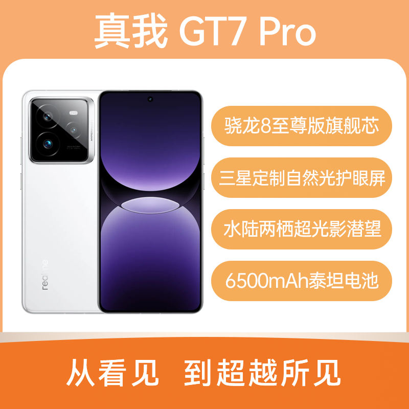 realme 真我 GT7 Pro 全网通5G版 光域白 16GB+512GB 骁龙8至尊版旗舰芯;真我×三星联合研发Eco²苍穹屏,非偏振自然光护眼技术,超专业级色域显示,超低屏幕功耗;水陆两栖超光影潜望,自研水下色彩算法优化加持IP69&IP68满级防水;6500mAh泰坦电池,120W光速秒充