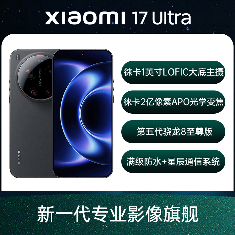 小米 17 Ultra 全网通5G版 黑色 16GB+1TB 标准版 徕卡 2 亿像素光学变焦,徕卡1英寸光学大师;第五代骁龙8至尊版移动平台;6800mAh小米金沙江电池;小米星辰通信系统