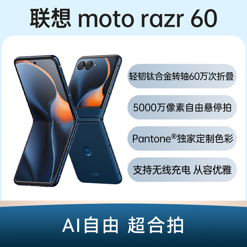 联想 moto razr 60 全网通5G版 午夜苍蓝 12GB+256GB 湿手触控强劲防水;5000万自由悬停拍;轻韧钛合金转轴600000次折叠折痕几不可见