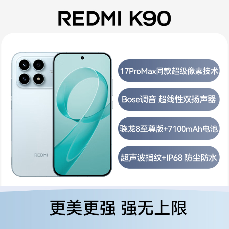 红米 REDMI K80 全网通5G版 汐月蓝 16GB+1TB 大满贯2K旗舰屏;超声波指纹解锁;IP69+IP68级防尘防水;第三代骁龙8旗舰性能;6550mAh大电池极致续航