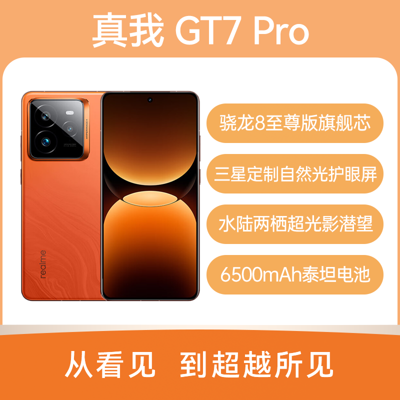 realme 真我 GT7 Pro 全网通5G版 火星 16GB+1TB 骁龙8至尊版旗舰芯;真我×三星联合研发Eco²苍穹屏,非偏振自然光护眼技术,超专业级色域显示,超低屏幕功耗;水陆两栖超光影潜望,自研水下色彩算法优化加持IP69&IP68满级防水;6500mAh泰坦电池,120W光速秒充
