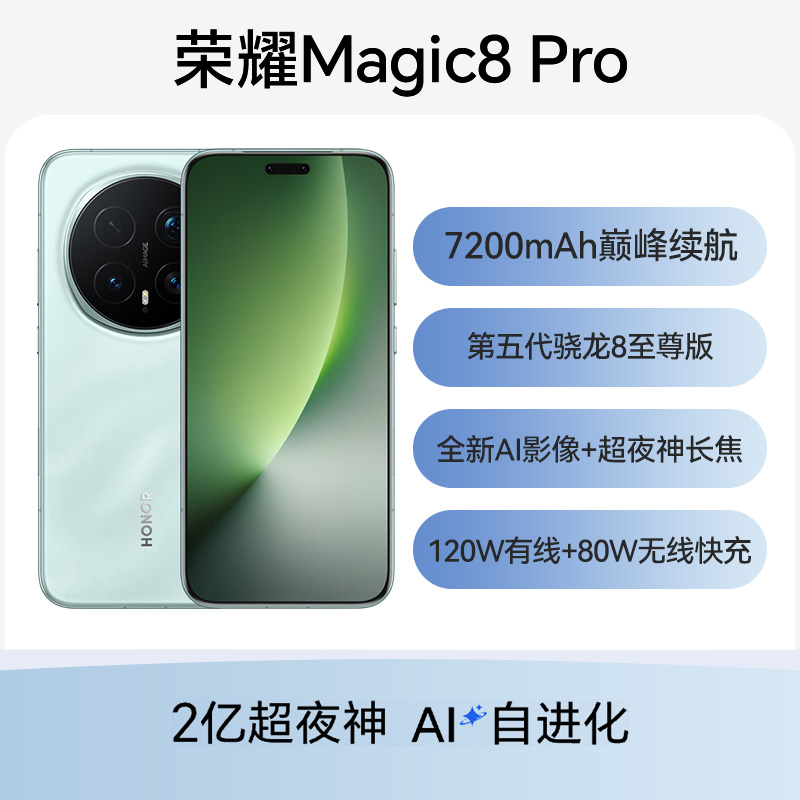 荣耀Magic8 Pro 全网通5G版 天青色 12GB+512GB 2亿超夜神,AI自进化;7200mAh巅峰续航;第五代骁龙8至尊版;全新AI影像+超夜神长焦;