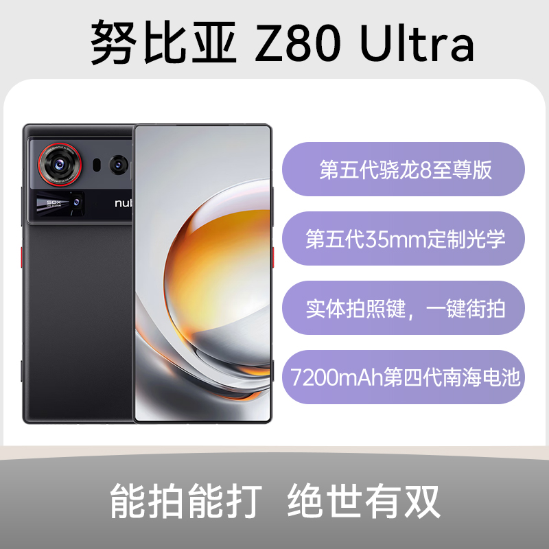 努比亚 Z70S Ultra 摄影师版 全网通5G版 暮影 24GB+1TB 35mm高定光学,6.85英寸第七代真全面无孔屏,搭载骁龙8至尊版满血三件套,6600mAh南海电池