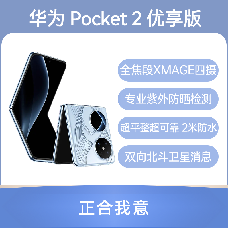华为 Pocket 2 优享版 蓝梦 12GB+512GB 超平整超可靠;全焦段XMAGE四摄;紫外防晒检测;超强灵犀通信