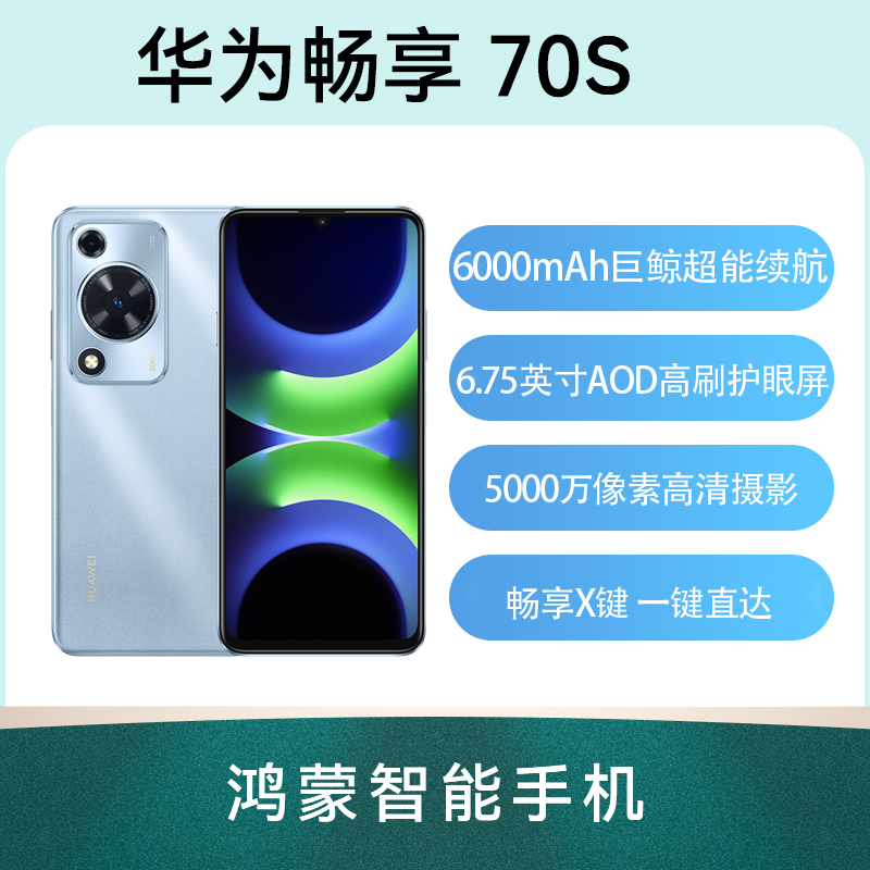 华为 畅享 70S 全网通版 冰晶蓝 256GB 6000mAh大容量电池,一周两充,长续航随心畅享;6.75英寸AOD高刷护眼大屏;畅享X键 常用功能一步直达;5000万像素高清摄影,还原真实质感