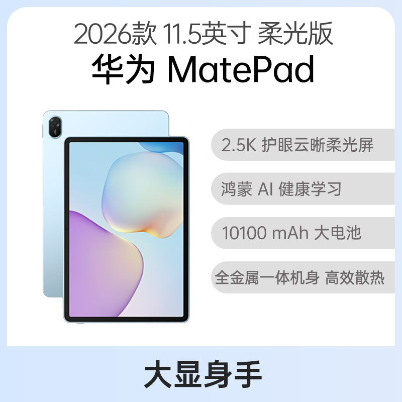 华为 MatePad 经典款 柔光版 11.5英寸 WiFi版 冰霜银 8GB+128GB 11.5英寸高刷护眼大屏,智慧化一站式学习,全金属一体化机身,7700mAh大电池