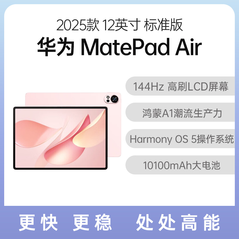 华为 MatePad Air 2025款 12英寸 标准版-不可享国补 樱语粉 12GB+256GB 该商品未拆封未激活,可正常享受新机质保服务;不与国家补贴和其他优惠叠加,每款数量有限,抢完即止!