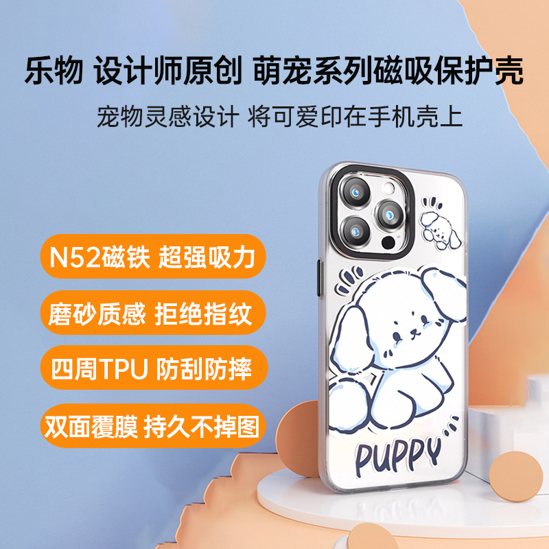 乐物 设计师原创 iPhone 15萌宠系列 Magsafe磁吸保护壳 透明白狗 iPhone 15 Pro 磨砂质感 拒绝指纹,防刮防摔,双面覆膜 持久不掉图