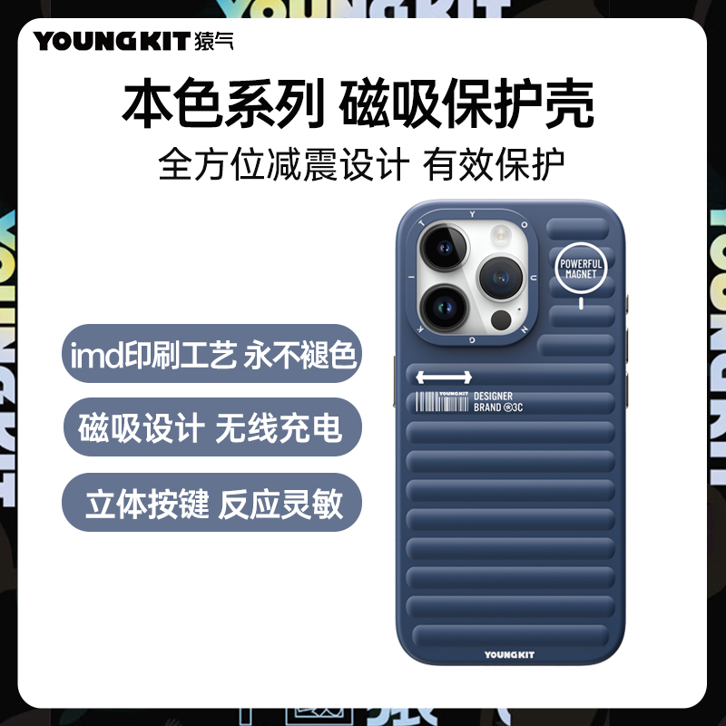 猿气 iPhone 15系列 本色系列磁吸保护壳 藏蓝 iPhone 15 Pro 全方位减震设计有效保护,立体按键反应灵敏