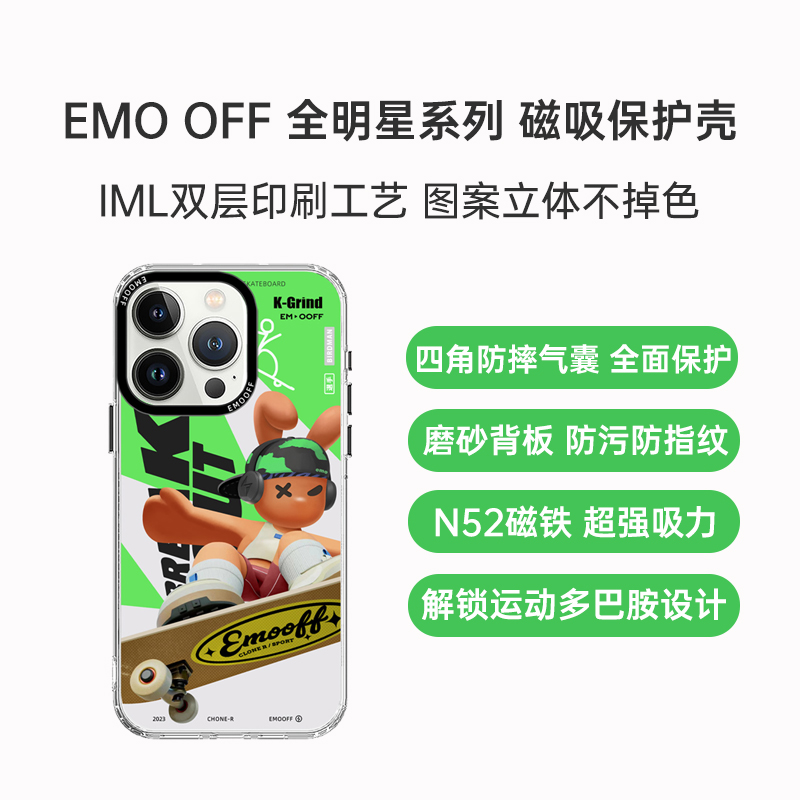 EMO OFF iPhone 15 系列全明星系列 Magsafe磁吸保护壳 滑板兔 iPhone 15 Pro 独立金属按键,精准开孔,镜头屏幕全方位保护