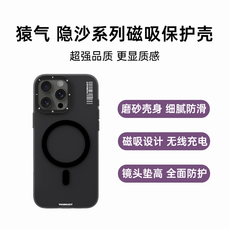猿气 iPhone 16 Pro 隐沙系列磁吸保护壳 透黑 全新磁吸式无线充电方式配备 N52 强大磁力,让您可以随时随地为 iPhone 轻松充电