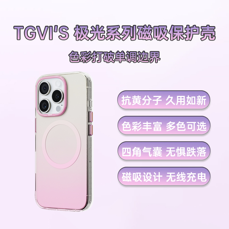 TGVIS iPhone 16 Pro 极光系列磁吸保护壳 郁金粉 镜框与背板一体化防护设计,防刮耐磨经摔不脱落
