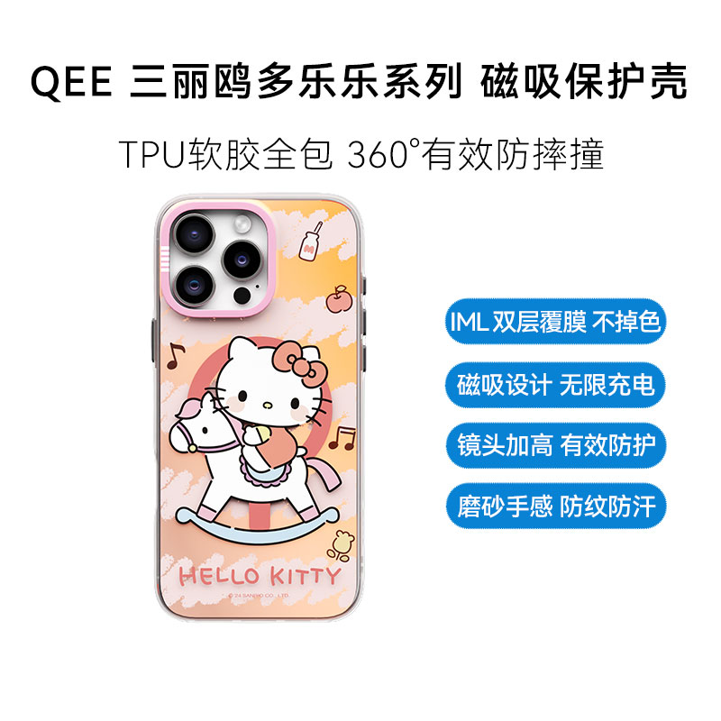 QEE iPhone 16 Pro Max三丽鸥多乐乐系列 磁吸保护壳 凯蒂猫红 双层覆膜 不掉色 磁吸设计