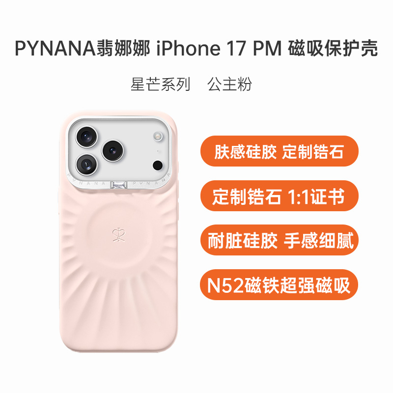 PYNANA翡娜娜 iPhone 16 Pro 繁星系列磁吸保护壳 浪漫粉  手工包镶工艺,打造极致精致,液态纳米科技皮, 手感顺滑触感好