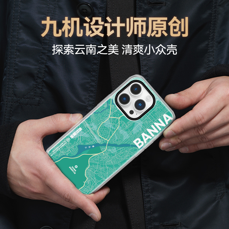 九机设计师款 原创旅行保护壳 版纳地图 iPhone 14 Pro 探索云南之美,清爽小众壳