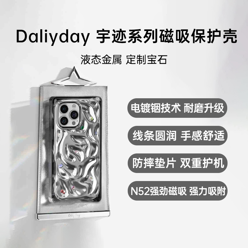Daliyday iPhone 16 Pro Max 宇迹系列 磁吸保护壳 宇迹银 采用真空不导电镀铟电镀技术,耐磨升级到RCA150圈,解決划痕耐磨问题久用无划痕