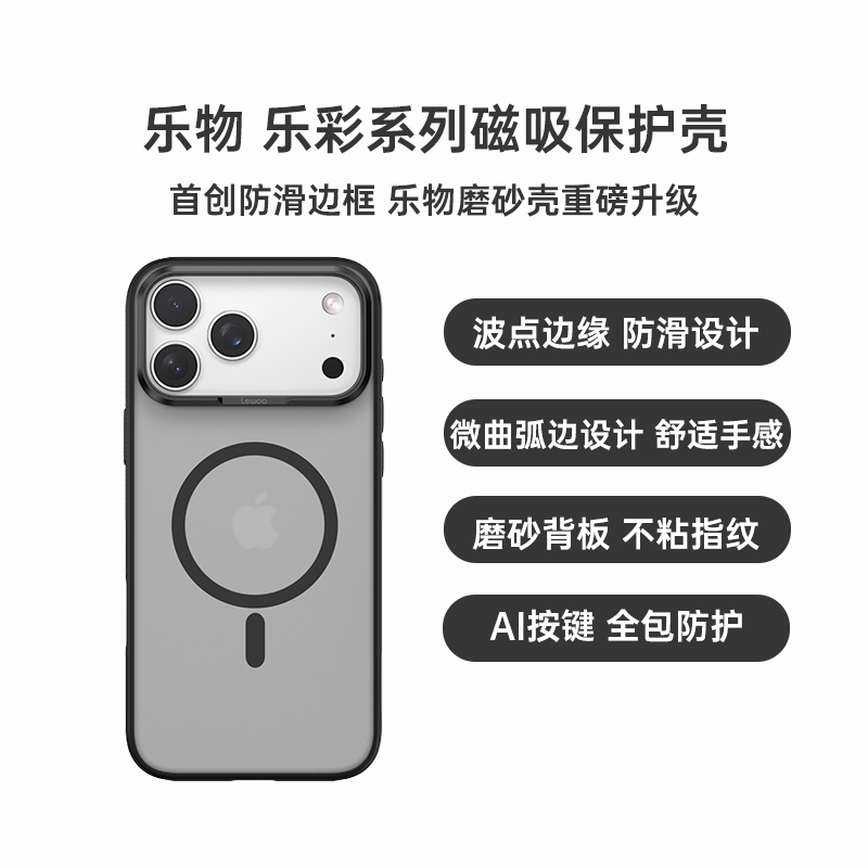 乐物 iPhone 17 Pro 乐彩系列磨砂防摔磁吸保护壳 岩石黑 波点边缘 防滑设计,微曲弧边设计 舒适手感,磨砂背板 不粘指纹,AI按键 全包防护