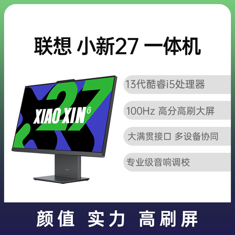 联想 小新 27 一体机 酷睿版 27英寸 深空灰 i5-13420H 16G 1TB 固态 集显 13代i5酷睿处理器;100Hz高分高刷27英寸大屏;专业级音响调校 ; 德国莱茵双重认证