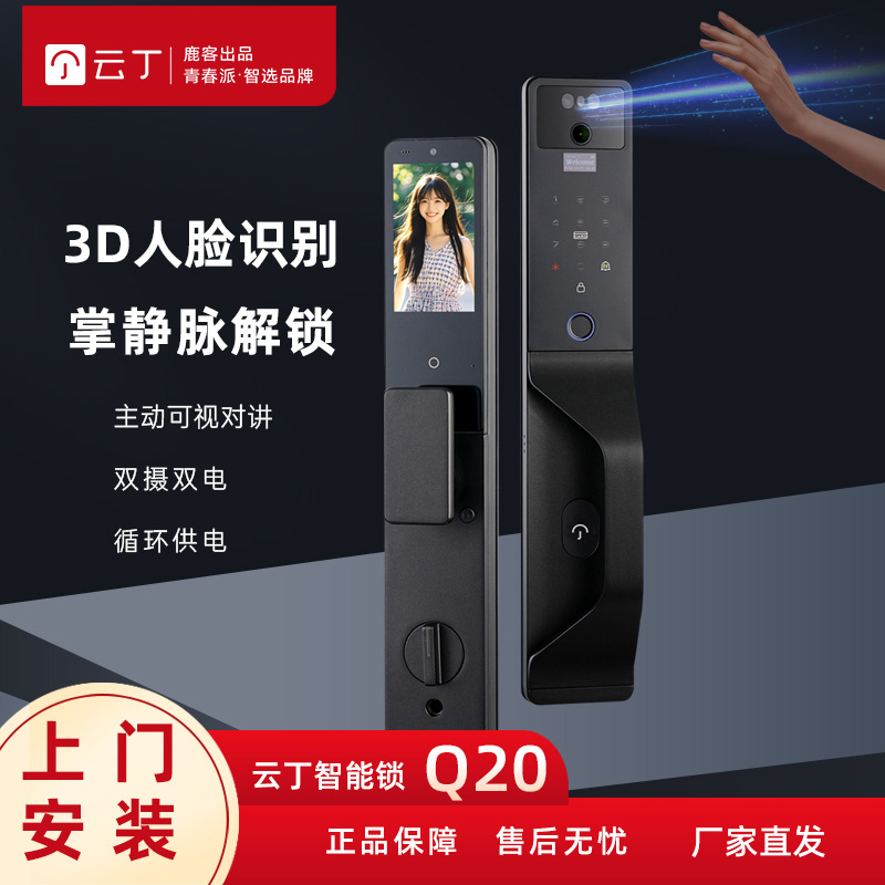 德施曼 智能锁Q50FMax 哨兵版 哨兵猫眼,掌静脉识别,3D人脸识别,指纹识别,5英寸高清室内屏,微信视频通话
