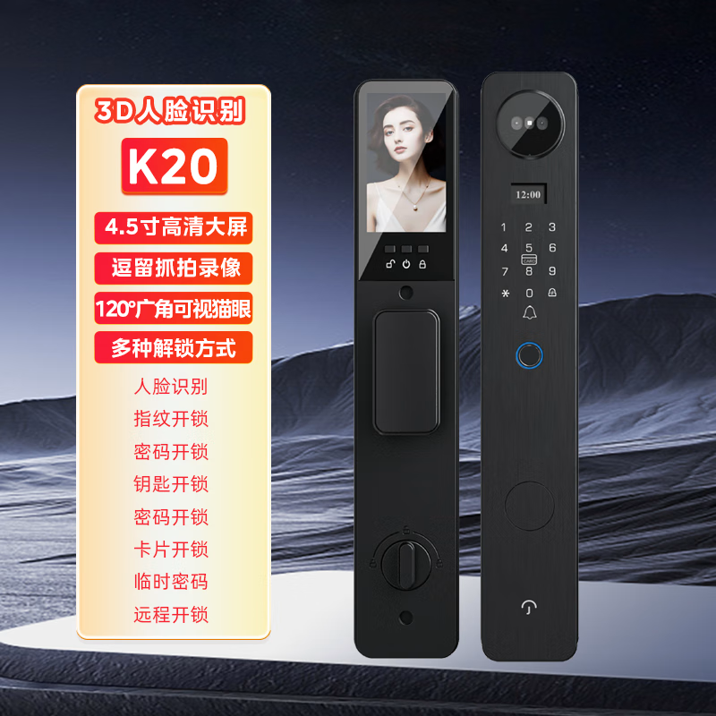 凯迪仕 智能门锁 K70 传奇大师 黑色 AI 3D人脸识别,更快更准更安全;AI猫眼监控,全天不漏拍,双模式AI安防系统靠近即拍