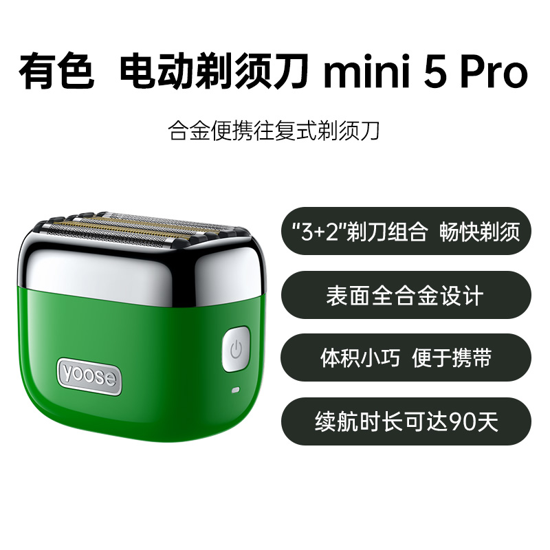 有色 合金便携往复式剃须刀mini 5 Pro 巨蟒绿 每分钟14000转电机,磁吸无线充电,续航90天,1米深度防水,安全旅行锁
