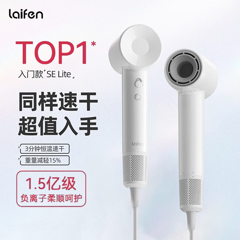 徕芬 高速吹风机 LFHD SE Lite 白色 恒温速干快至3分钟,标配高速无刷电机,1.5亿级负离子中和静电,打造柔顺蓬松感