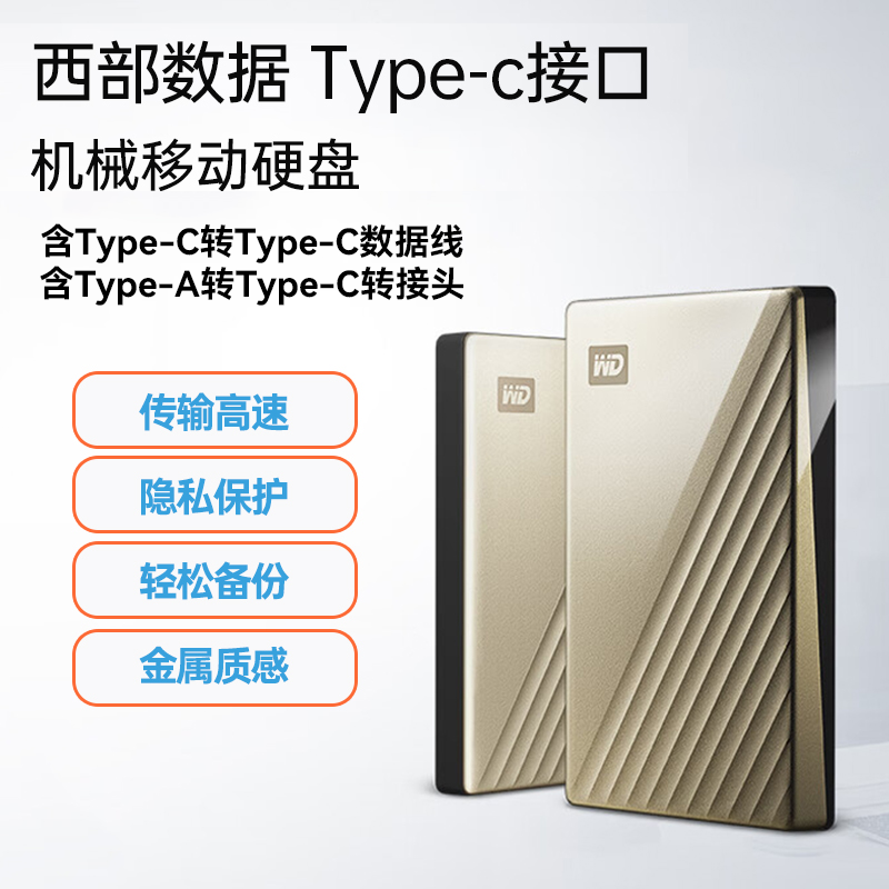 西部数据 Ultra系列 Type-c接口 机械移动硬盘 6T 金色 广泛兼容Type-C,文件安全加密,数据自动备份。