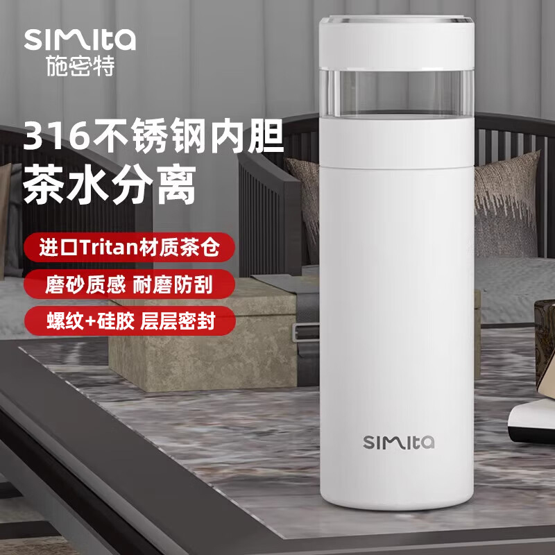 NoNoo 诺诺大师温显茶水分离保温杯 经典黑 全身可拆卸,360°倒置不漏,Tritan茶仓