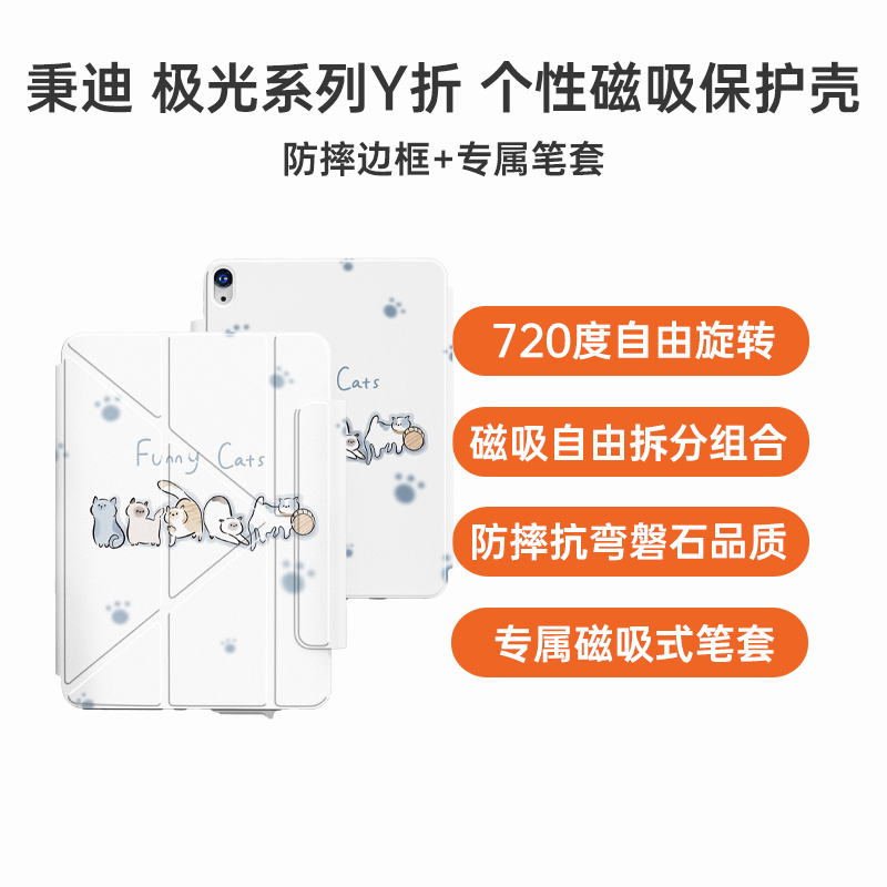 秉迪 iPad 2025款 11代/2022款 第10代 10.9英寸 极光系列Y折 个性磁吸保护壳 线条猫 横竖支撑 Y轴折叠