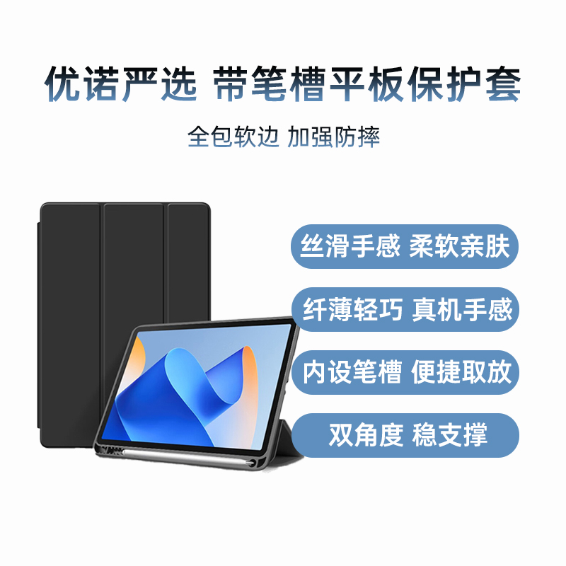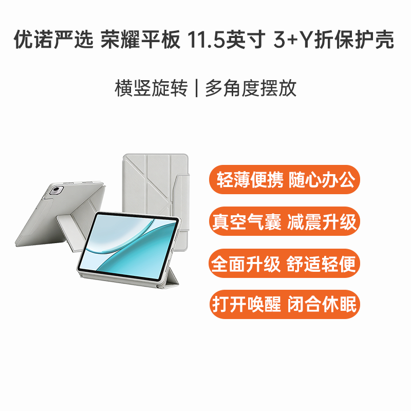 秉迪 华为 MatePad 2026/2025/2024款 11.5英寸 3+Y折带搭扣笔袋滑轨翻盖保护壳 杏子灰 创新搭扣式设计,触控笔新搭档,面板侧面滑轨可拆卸,Y折支撑多角度。