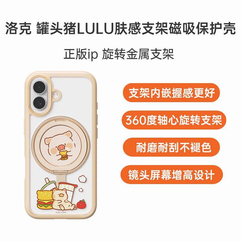 洛克 iPhone 16 Pro 罐头猪LuLu 日常系列磁吸旋转支架保护壳 贪吃汉堡 LULU猪正版联名,旋转支架玩不停,转动解压添乐趣